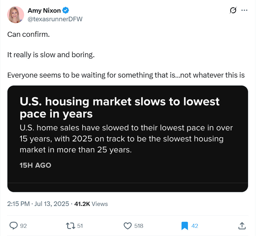 Potential buyers are being served early-80s levels affordability in the housing market and they are sending it back, like an undercooked piece of chicken. They don’t want it. But when rates make things more… appetizing? They will all come rushing back in at once-